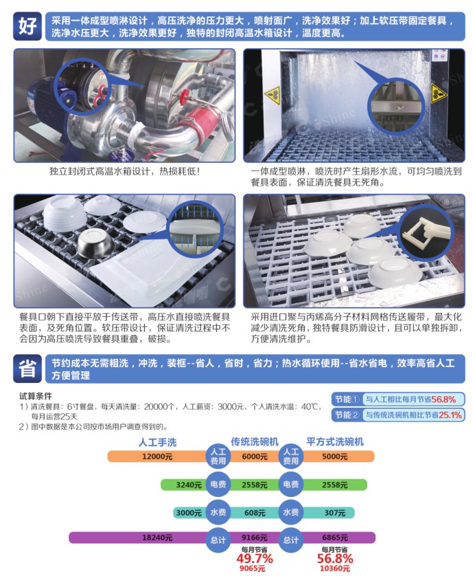 第二:是洗碗機(jī)浪費(fèi)水電的問(wèn)題,大多數(shù)人認(rèn)為用洗碗機(jī)洗更費(fèi)電費(fèi)水,但是國(guó)家家用電器質(zhì)量監(jiān)督檢驗(yàn)中心曾組織了一場(chǎng)用洗碗機(jī)洗碗以及人工洗碗的耗用水電對(duì)比實(shí)驗(yàn),兩組分別清洗76件污染程度、大小一樣的餐具,比較用水量、用電