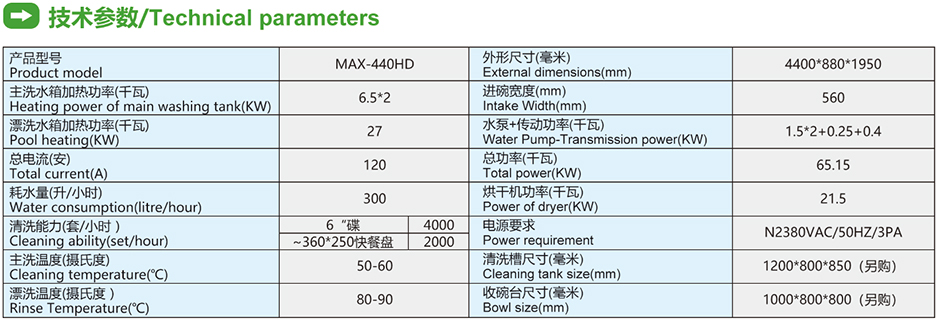 雙缸兩道漂洗單烘干平放式洗碗機(jī)MAX-440HD