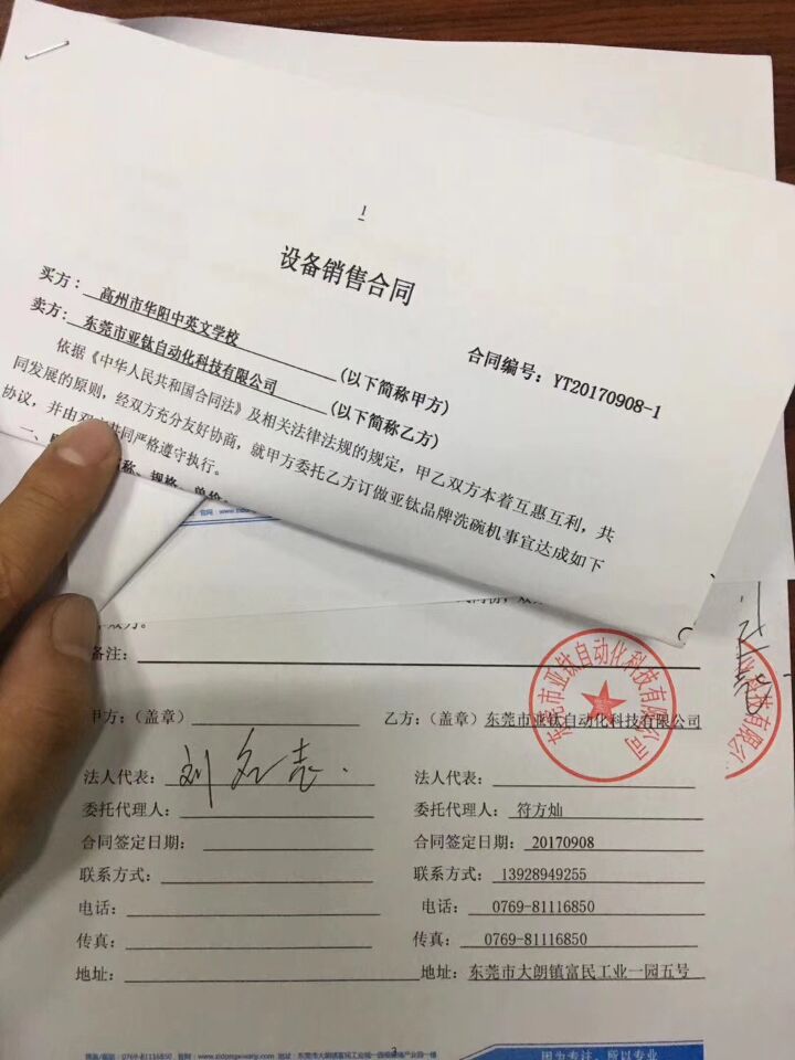經(jīng)過三個(gè)月的洽談,終于得到高州市華陽中英文學(xué)校各位領(lǐng)導(dǎo)的認(rèn)可,正式和亞鈦洗碗機(jī)合作,并與七月份中旬裝機(jī)試機(jī)成功,當(dāng)場(chǎng)試機(jī)清洗的餐具得到各位領(lǐng)導(dǎo)的一致肯定。特別是劉校長(zhǎng)的鼎力支持。